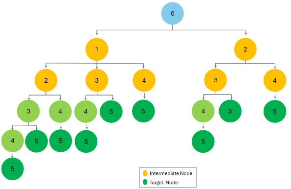 Let’s revisit the same coding challenge as an example: finding all possible paths from node 0 to node 5 where each path is strictly ascending.